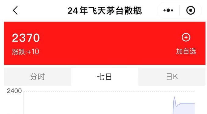 相比1935的市场价格波动,飞天茅台酒的价格在近日回升得更为明显。据易茅时价小程序,24年飞天茅台散瓶,从6月25日的低于2200元/瓶,逐步回升至今日的2370元/瓶。