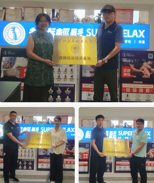 在热烈的掌声中,欧阳宇星书记与张宏院长共同将“体育保健与康复实训中心”、“教师培训培养基地”、“学生实践创新基地”的牌匾授予脊地脊柱养护中心。这块沉甸甸的牌匾,不仅是一份荣誉,更是一份责任与承诺,象征着校企双方深度合作的正式启航。
