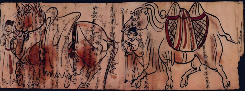 《骆驼:流动的长城》插图:敦煌莫高窟藏经洞的绘画《马•骆驼图》